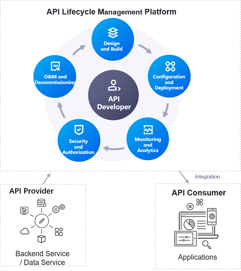 The APIM decouples the production and consumption of APIs. When the backend API changes, the frontend application can continue to access the API without modifying the application code or configurations.
