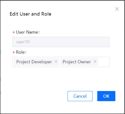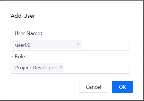 After a project is created, the project administrator can add members to the project, assign roles to the members, or delete members.