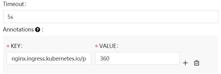 4. Set the Timeout in seconds for the connection to the upstream servers and add Annotations to customize the behaviour.