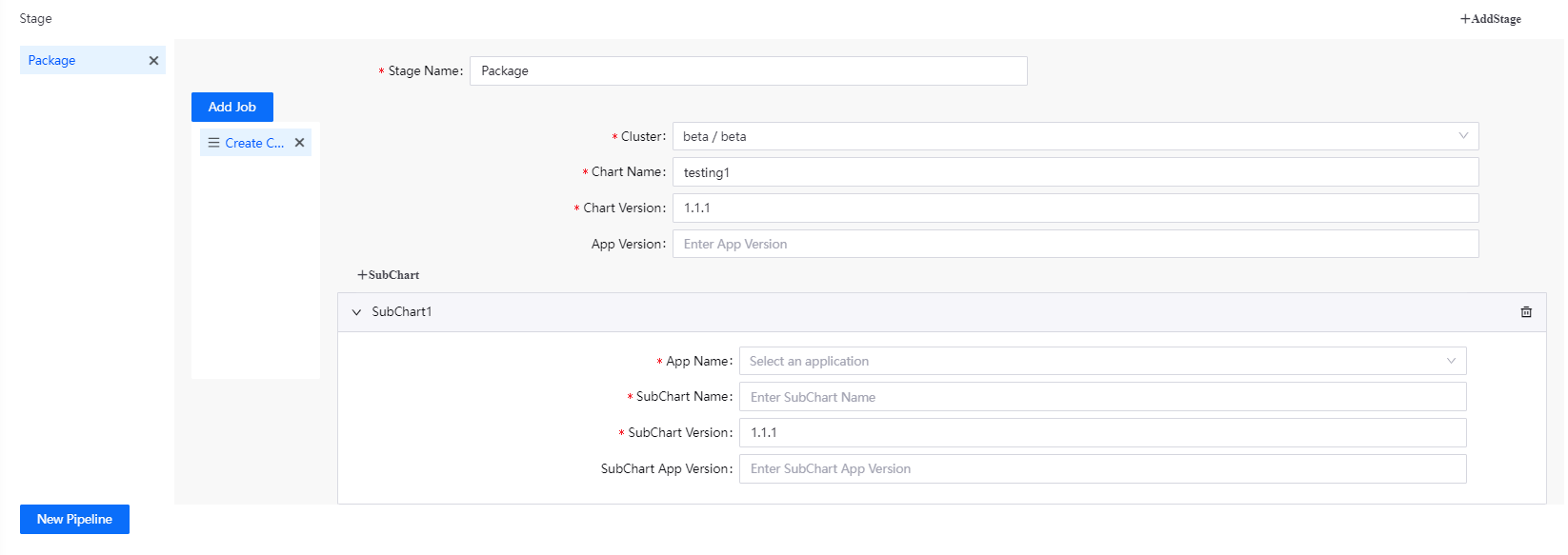 • SubChart Name: Enter the application of the SubChart, the default is the application name.