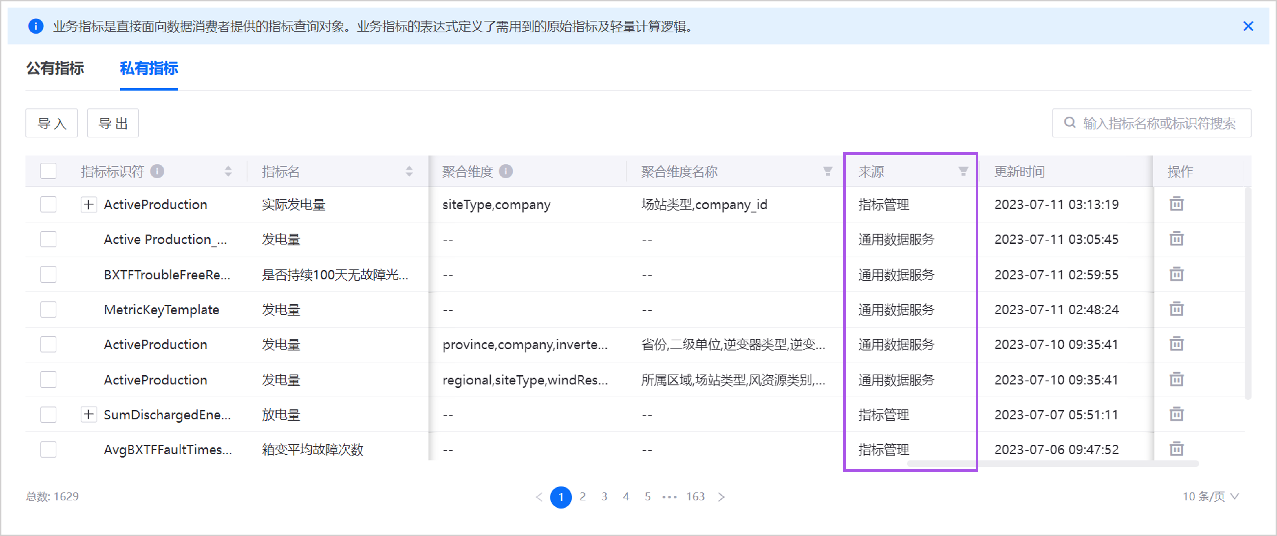 同步成功后,指标将按照业务指标映射逻辑展示在通用数据服务的业务指标列表中。