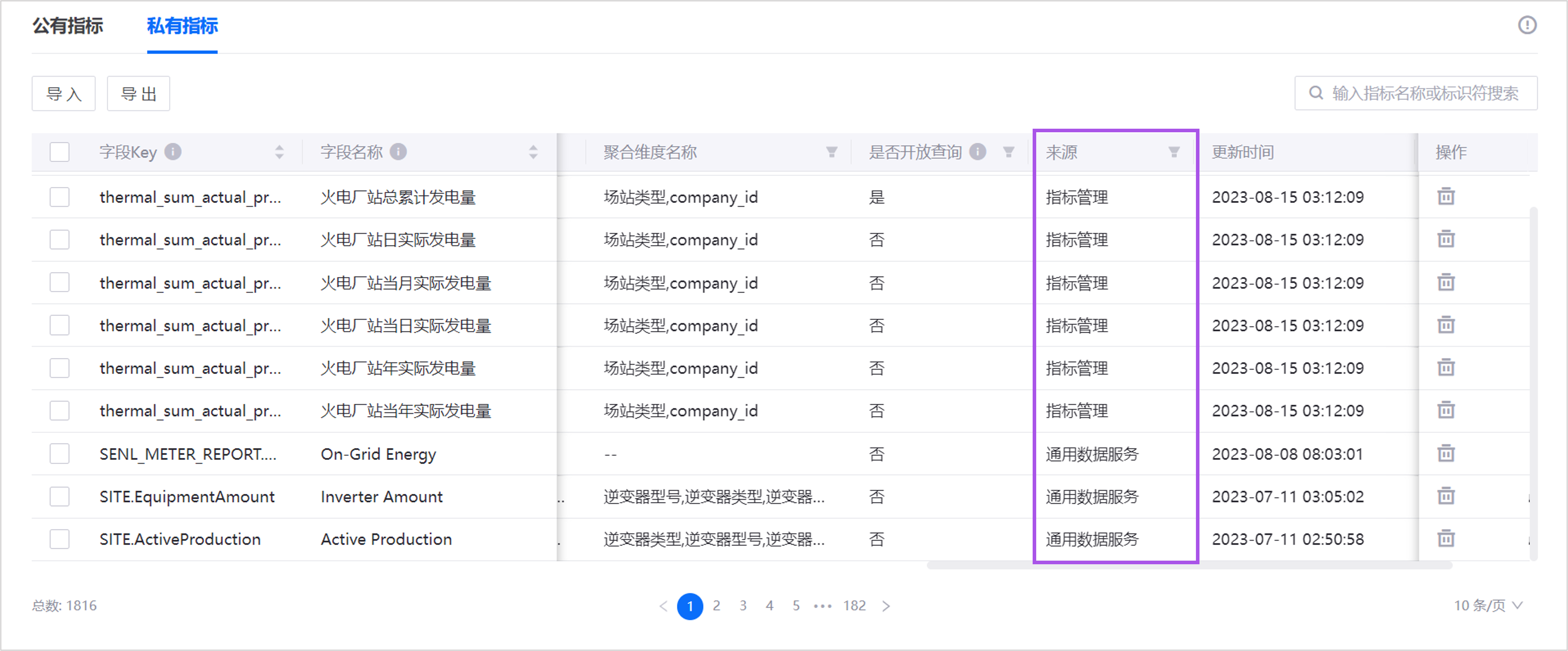 原始指标可作为定义业务指标的素材,也可在开放查询后通过通用数据服务 API 查询。