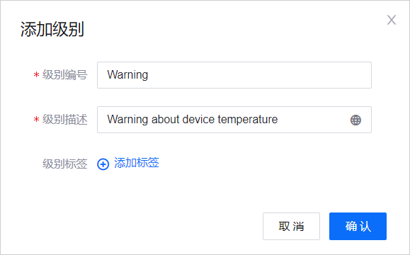 参见 创建告警级别,在 告警级别 中点击 新增级别,创建 “Warning” 告警级别。