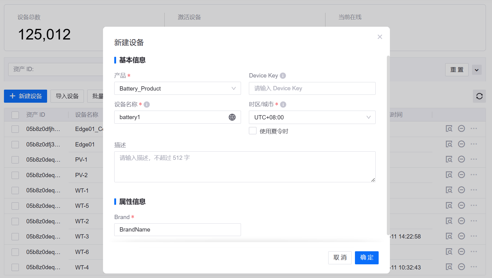 点击 新建设备,在弹窗中配置如下信息: