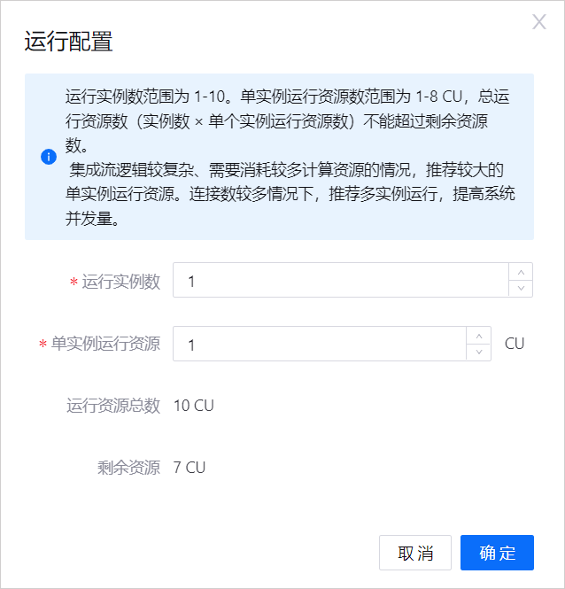 ,发布集成流。分配集成流所需的运行时资源,然后选择 确定。
