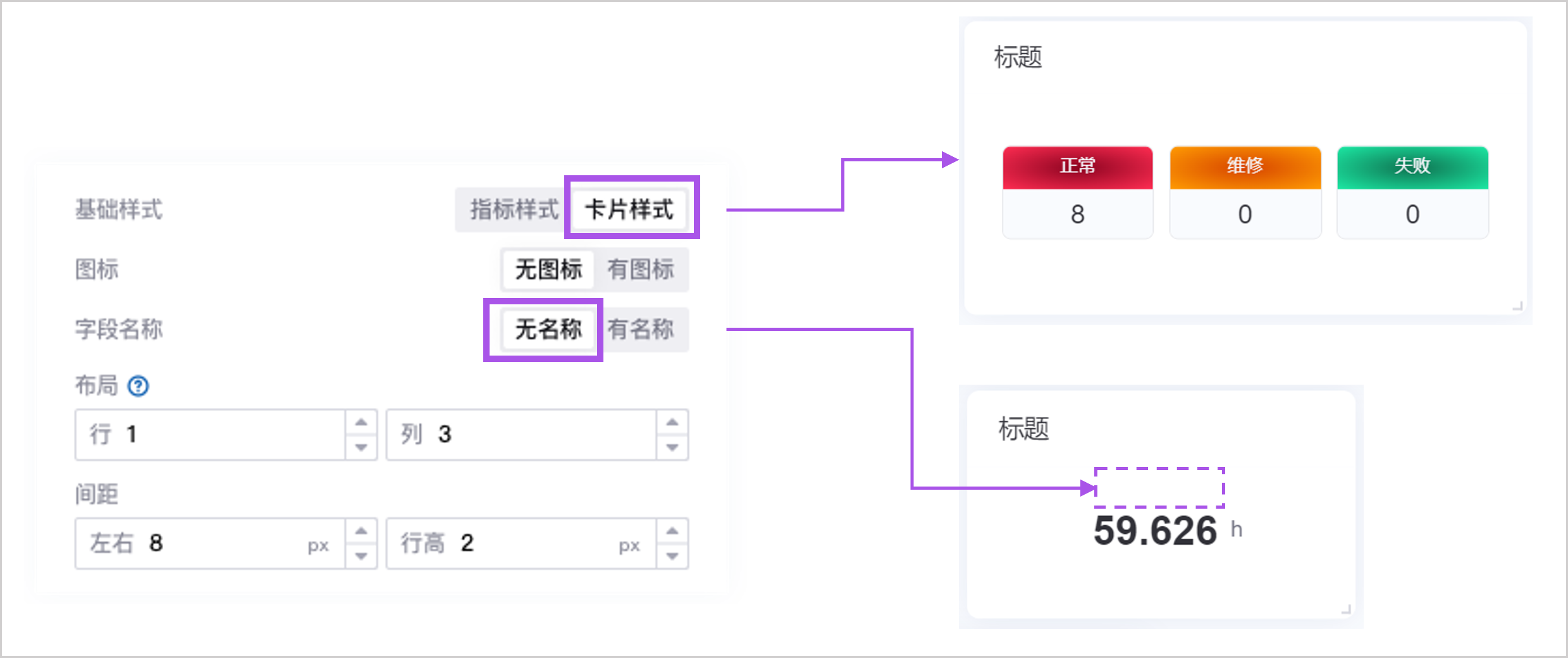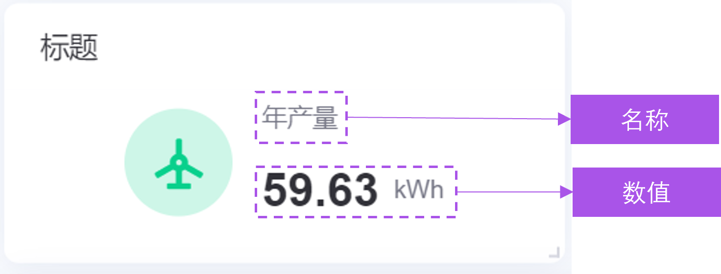 指标卡组件中,一个指标的数据由 名称数值 两部分组成。