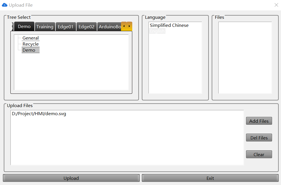 Click Add Files, browse and select the .SVG file to be uploaded, and click Upload.