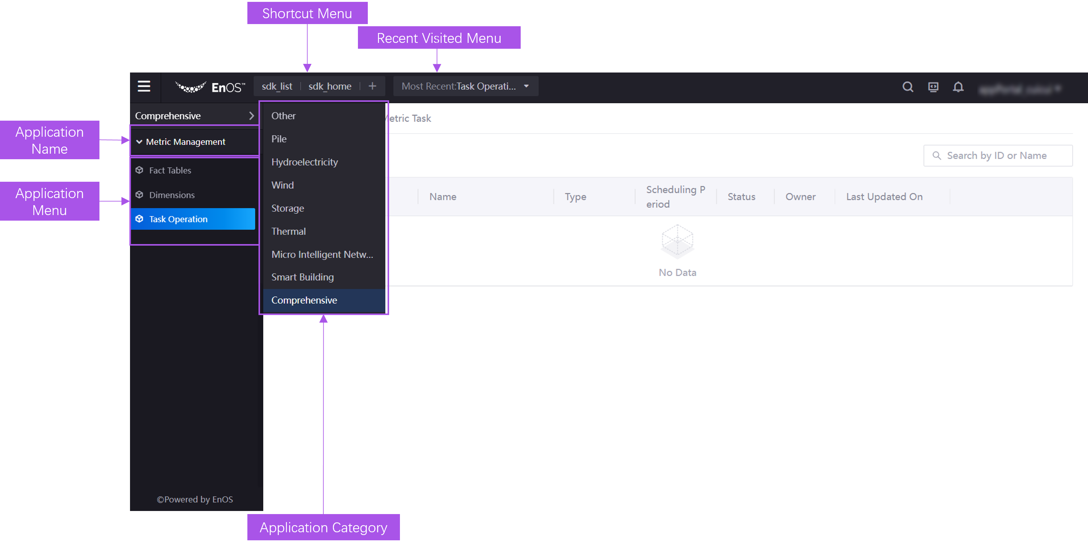 Industry Application Template Management: you can flexibly assemble EnOS Industry Application Common Building Blocks to build solution templates and use templates to create and update applications. Meanwhile, the growing library of solution templates can help you to create applications quickly across different environments and OUs.
