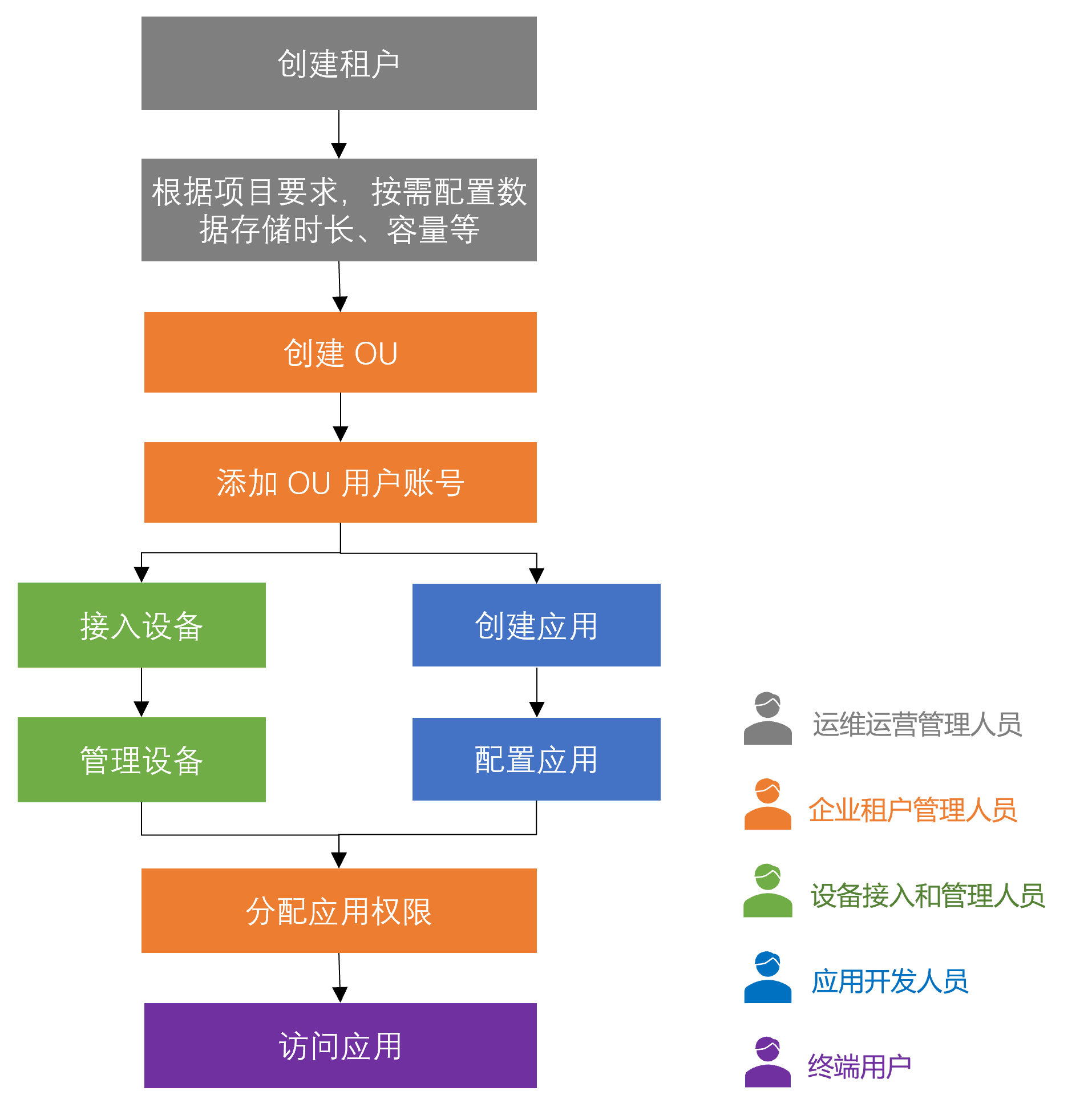 以上预定义角色使用 EnOS Cloud 的流程如下图如所示。