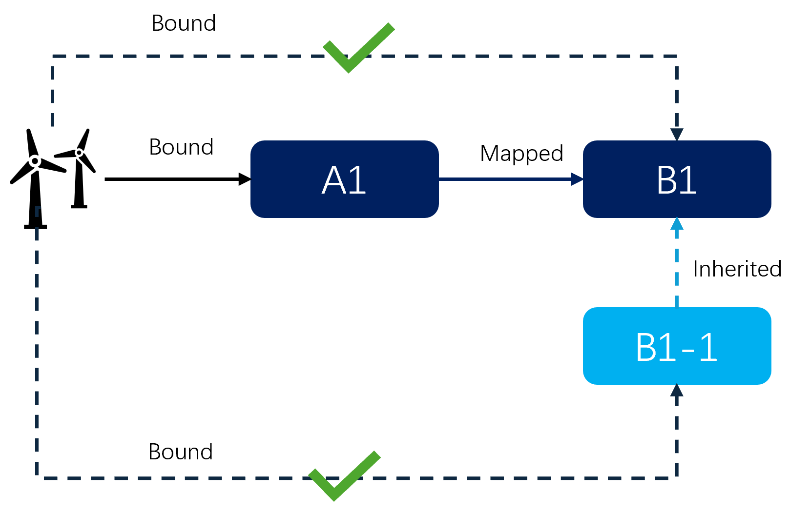 Example: : If A1 → B1 exists, devices bound with A1 can bind B1 or B1-1 in the same time to share device data.