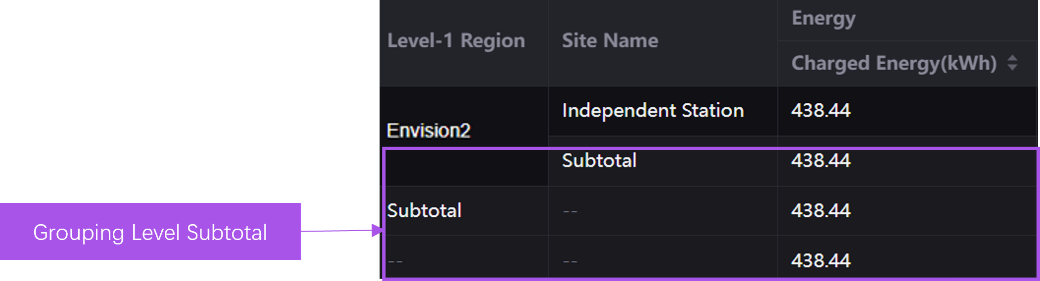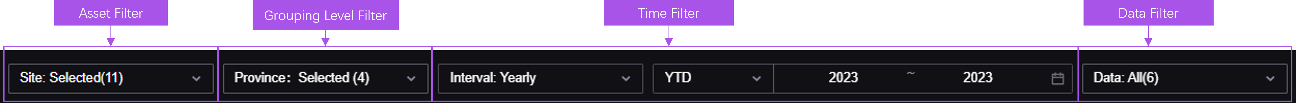 Grouping Level Filter: select assets by the grouping levels of the reports.