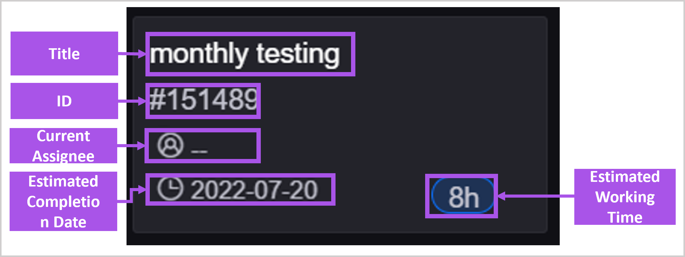 The following work order information is included on the work order card: