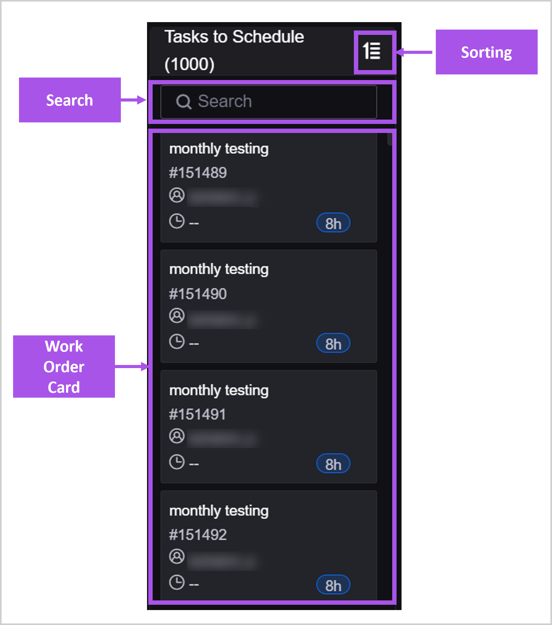 Work Order Card: view all work orders that match the filter conditions.