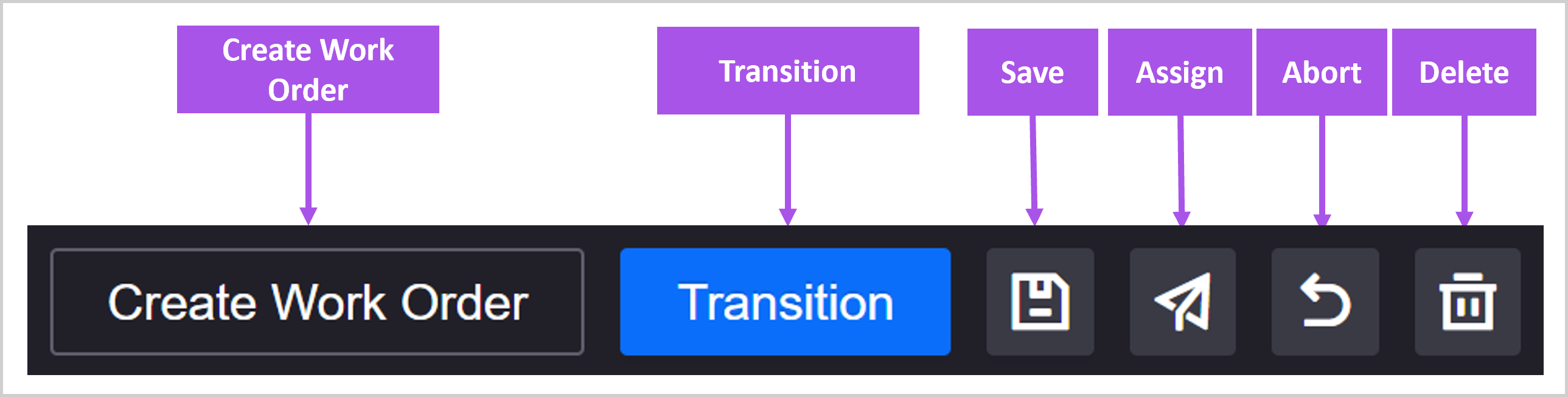 Abort: abort the work order and terminates the workflow.