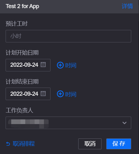 选择省略号(…),直接编辑 预计工时、计划开始日期、计划结束日期、工作负责人 等信息,手动调整工单的排程信息。