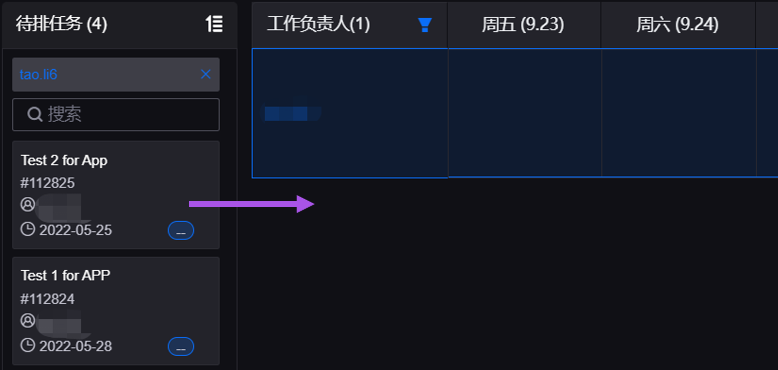 在排程看板中,管理人员拖拽工单,快速设定工单的负责人和执行时间对工单进行排期。