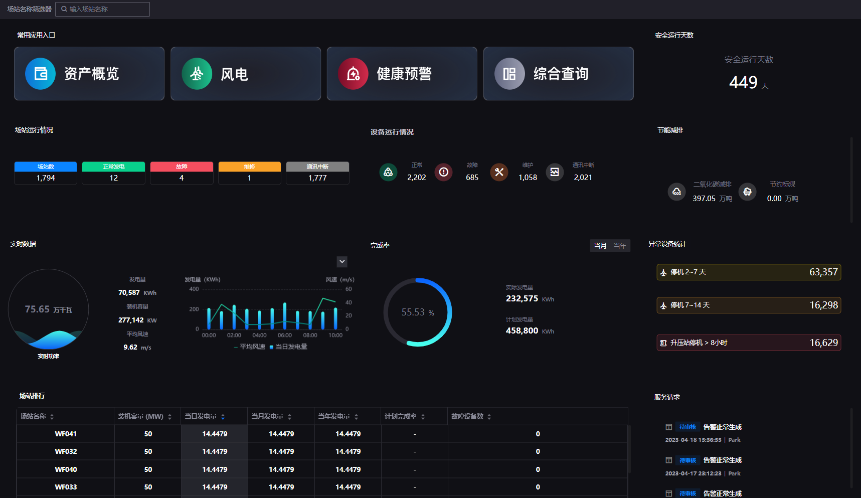 当日发电量、平均风速等关键实时数据